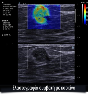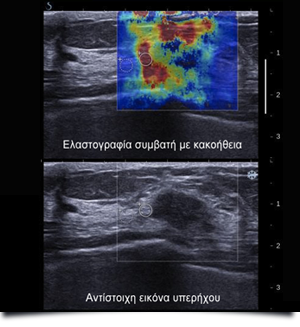 Η ελαστογραφία είναι μια πιο εξελιγμενη μορφή υπερήχων με τη βασική αρχή ότι, εξασκώντας πίεση άνωθεν της βλάβης, μπορεί να μετρηθεί η ελαστικότητα της σε σχέση με παρακείμενο φυσιολογικό ιστό και έτσι μπορεί ο ειδικός ιατρός να χαρακτηρίσει μια βλάβη κακοήθεια ή όχι.